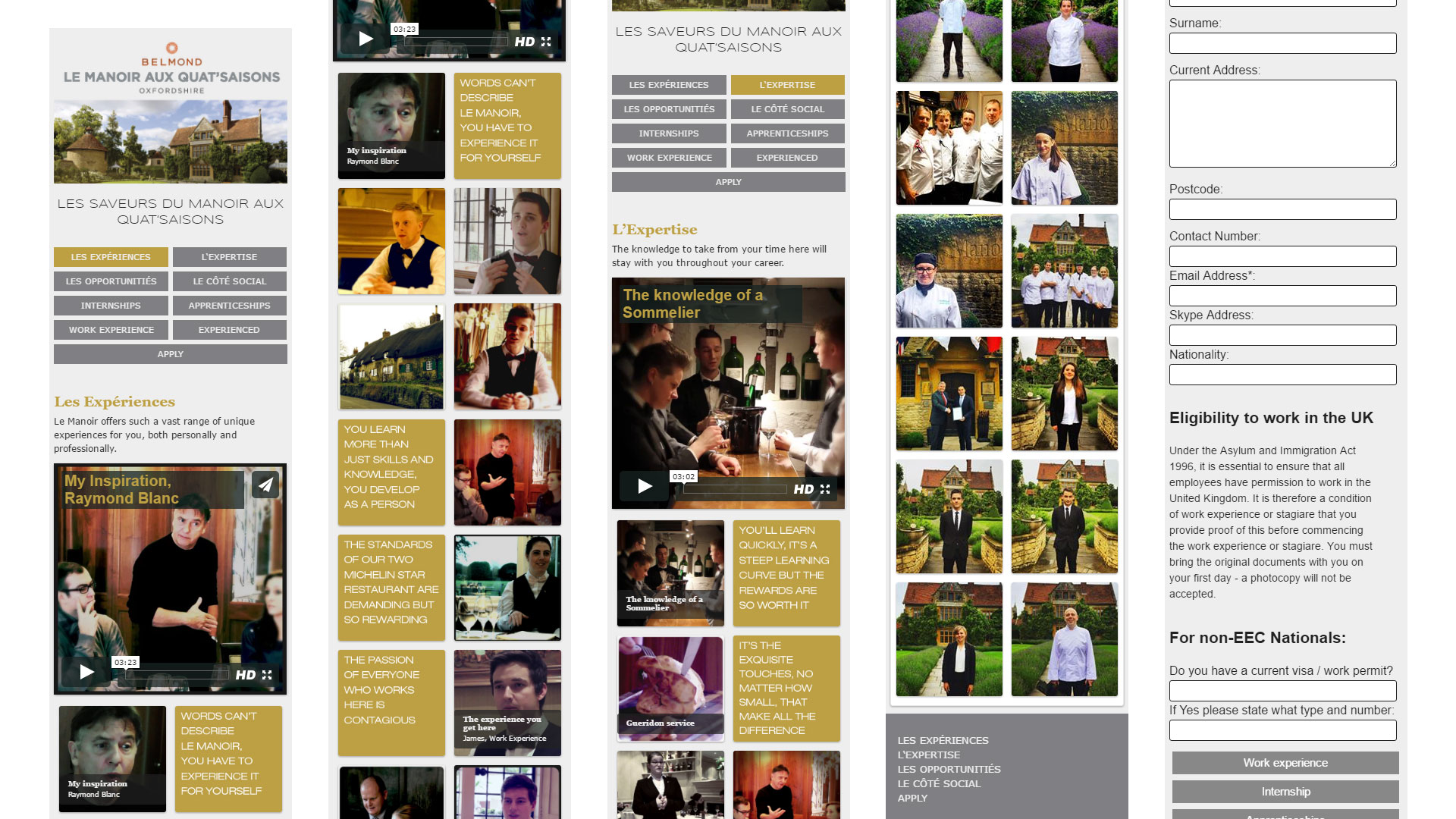 The team at le manoir required a new recruitment website and social media presence to promote their work experience and internships as well as their apprenticeship and experienced job roles. We visited the restaurant over a period of a few weeks gathering stock footage and interviewing the staff for content. We treated our videos with instagram styled filters which tied into the bigger social media strategy. The site is heavily video led, structure to guide the user through 3 main sections. The first section contains videos around the experience of working at the le manoir followed by the expertise you gain, finishing with videos covering what opportunities are available, from work experience and internships through to apprenticeships and experienced roles. We filmed and edited over 30 videos which were also shared on instagram and twitter.